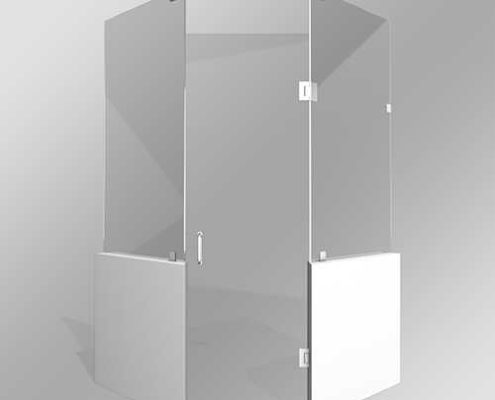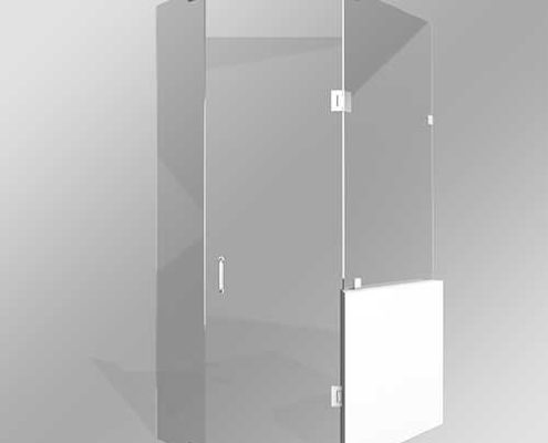 All of the above options can be used with header and pivot hinges instead of swing hinges. Neo-Angle doors use custom mitered angles, where the corners are cut at an angle to ensure a seamless look and feel, and minimization of leaking.